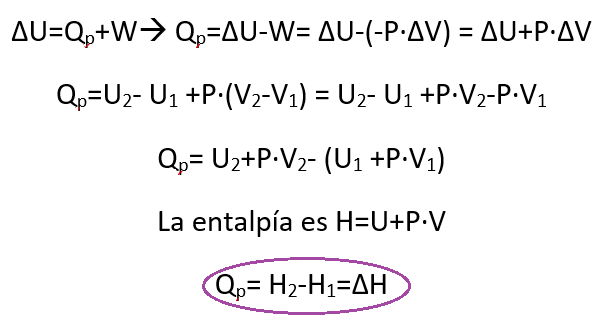 El calor absorbido o desprendido por el sistema a presión constante es igual a la variación de la entalpía del sistema.