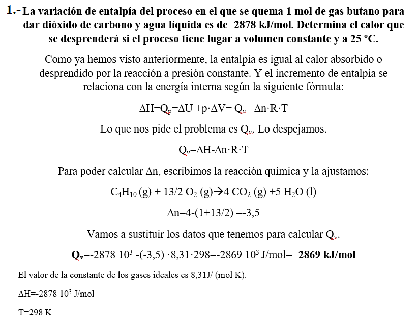 Las magnitudes ∆H(Qp) y ∆U(Qv) se relacionan mediante: