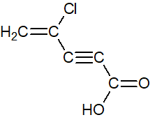 3)Para nombrar: Posición de los radicales y sus nombres por orden alfabético (4-cloro-)+cadena de carbonos (pent)+posición de dobles enlaces(4)+(prefijo di,tri,tetra si es necesario)en+ posición de tripes enlaces(2-)+(prefijo di,tri,tetra si es necesario)in+(prefijo di, si es necesario)oico–>ácido 4-cloropent-4-en-2-inoico