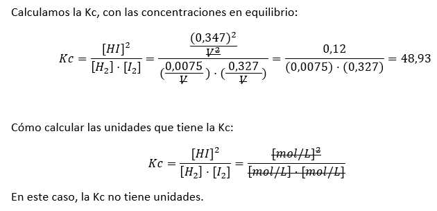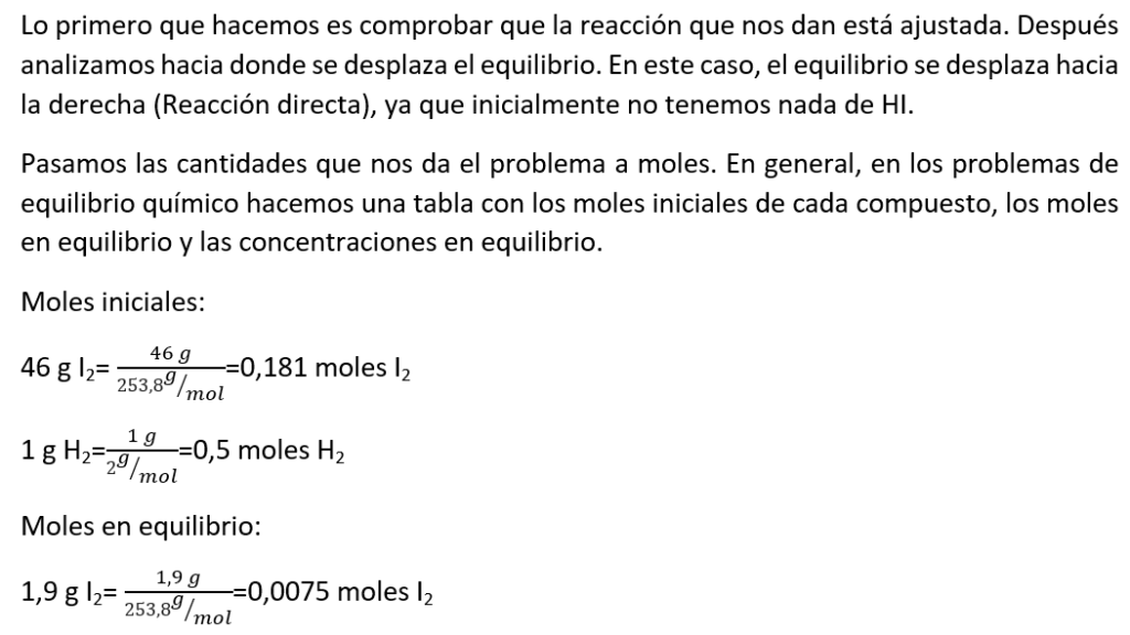 Reaccionan 46 g de yodo y 1 g de hidrógeno a 450 ºC, la mezcla en equilibrio contiene 1,9 g de